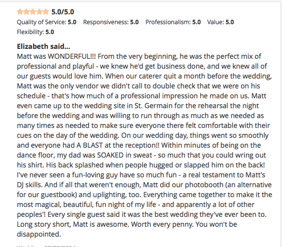 We were mentioned in Wisconsin Bride magazine today for Paul and Elizabeth Fields wedding at Black Bear Lodge in St. Germain ! It was an amazing day filled with family and friends and Fornear Photo captured every minute of it. We provided ceremony music, along with a microphone for Jason the officiant, their friend who played the banjo and for Paul and Liz so everyone could hear their vows. We also provided uplighting for the tent, a photobooth and the perfect blend of music for everyone to enjoy. The most memorable part of the night was seeing Liz’s dad completely covered in sweat from dancing the entire night. I don’t remember seeing him leave, not once! This was the best wedding from 2014 and I will remember it for a long time to come.